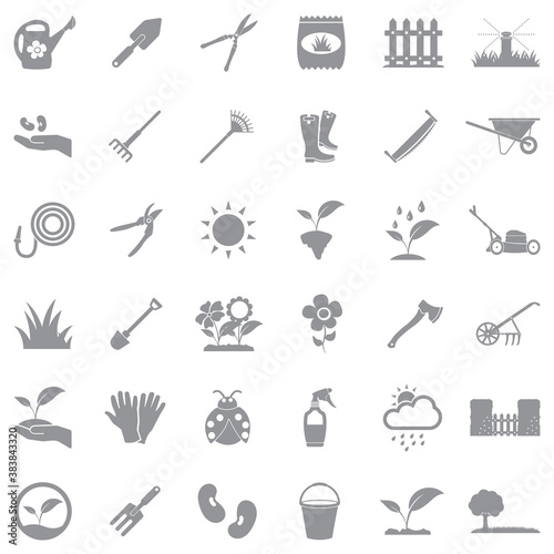 garden, gardening, icon, grey, white, boot, cultivation, cultivator, design, ecology, equipment, farming, fence, fertilizer, flower, flowerpot, fruit, grass, hose, illustration, insect, isolated, coccinellidae, lawn, lawn mower, nature, object, organic, plant, pot, seed, set, shovel, agriculture, dirtied, sun, symbol, tree, trowel, vector, collection, vegetable, water, wheelbarrow, yard, flat, graphic, signs, silhouette, web