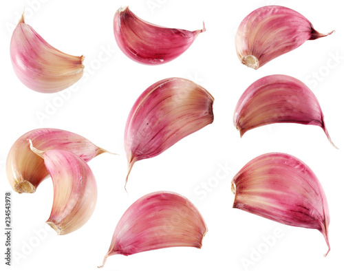 food, garlic, clove, herb, favor, favor, raw, root, harvest, produce, fresh, seasoning, ingredient, pink, on white, cut-out, dropout, knockout, uncooked