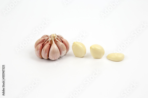 garlic, vegetable, spice, food, isolated, object, fresh, white, organic, bulb, part, ripe, plant, healthy, nourishment, vitamin, natural, spicey, raw, taste, clove, group, epicure, segment