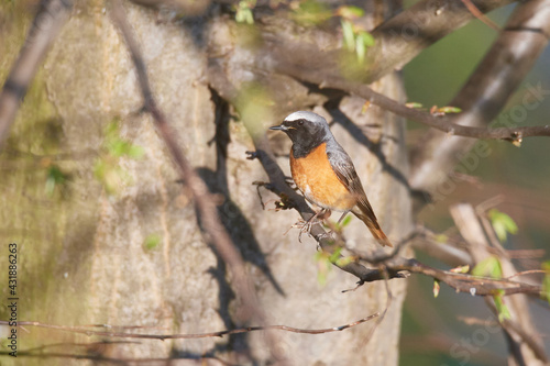 Gartenrotschwanz (Phoenicurus phoenicurus) Männchen in der Oberlausitz.