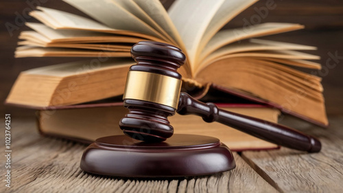 Gavel and Books on Wooden Table Law Concept
