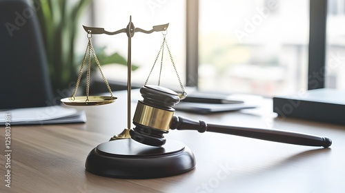 Gavel and Scales of Justice on a Desk in a Law Office Setting