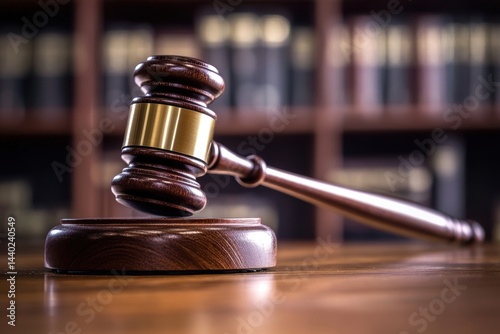 Gavel on wooden desk symbolizes legal justice system law court room decision dark wooden background