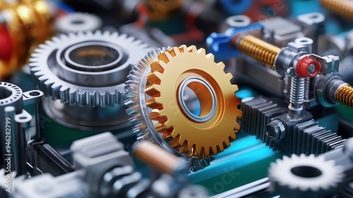 Gear Assembly, Close-up of interconnected gears in a mechanical system, Engineering Precision.