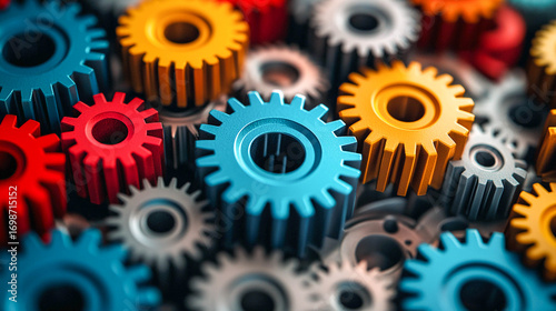gear, technology, progress, interaction, mechanic, colours, pattern, system, movement, innovation, detail, design, industry, mechanism, automation, communication, work, energy, dynamic, construction, production, efficiency, idea, creativity, engineering, development, equipment, functionality, element, integration, complexity, solution, progressive, combination, harmony