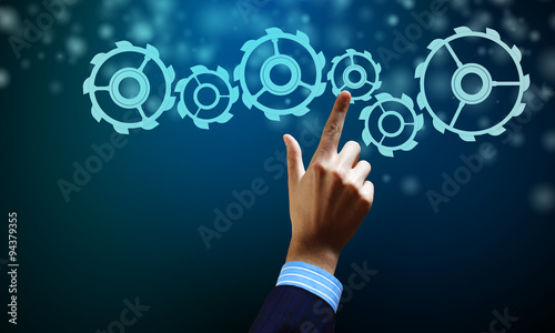 mechanism, finger, pointing, touching, teamwork, team, touch, organisation, engine, cogwheel, choose, human, blue, businessman, business, innovation, man, male, digital, media, interface, success, symbol, contemporary, pushing, gear, connection, choosing, choice, set, working, structure, screen