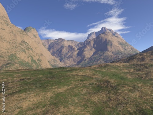 green, grass, white, blue, cloud, brown, vale, hill, mount, rock, lonely, heaven, mountain, vegetation