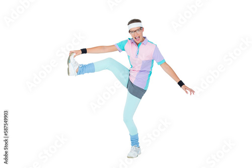 Geeky hipster posing in sportswear