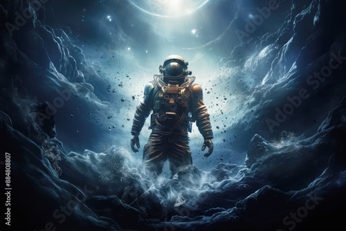 generated illustration spacemen or astronauts walking on the moon.