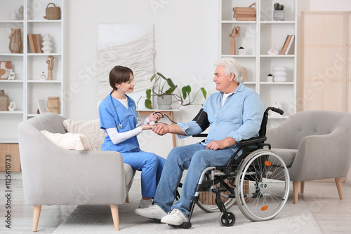 adult, aged, appointment, assistant, blood, care, caucasian, make well, diagnosis, disease, doctor, elderly, exam, female, girl, health, home, indoor, job, male, man, mature, measuring, medicals, medicine, modern, nurse, occupation, old, patient, pensioner, people, person, physician, portrait, pressure, profession, retiree, senior, service, smiling, specialist, symptom, treatment, visit, wheelchair, woman, work, young
