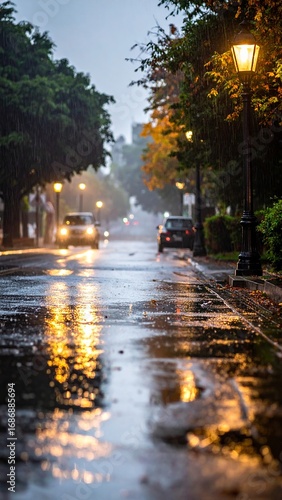 rain, street, city, urban, reflections, nightlight, neon light, moody, atmosphere, cinematic, downtown, metropolis, nightlife, copy space, city landscape, city landscape, night scene, night photography, melancholy, dramatic, transportation, rainy weather, illuminated, city lights, car, tree