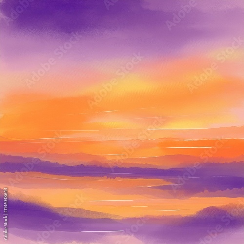 Generated image abstract watercolor background sunset sky orange purple