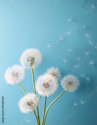 Generated image Dandelion fluff background for aesthetic minimalism style background. Light blue color
