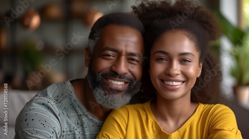 family, bonding, african american, smile, father, daughter, happiness, joy, together, portrait, cheerful, human relationships, kinship, love, warmth, contentment, home, casual attire, connection, affection, togetherness, happy, domestic life, home interior, quality time, missy, cosy, comfortable, fatherhood, heartwarming, embracing, generation, senior