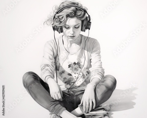 ヘッドフォンをつけた女性,Generative AI AI画像