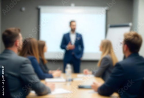 Generative AI Business Meeting Visualization: Abstract Blurred Image of a Corporate Presentation