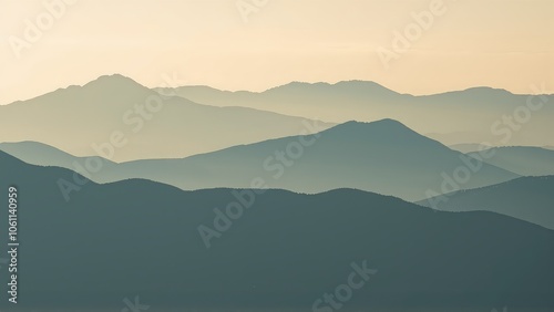 Generative AI, Minimalist Aerial View of Serene Mountain Ranges with Soft Cloud Layers