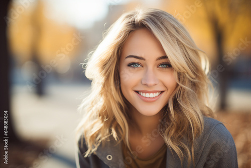 Generative Ai portrait of young girl woman isolated over blurred city lights sunny day background