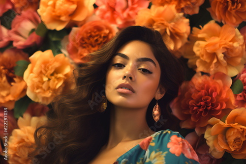 Generative ai studio portrait of beautiful latino brunette young woman on colour backgrounds