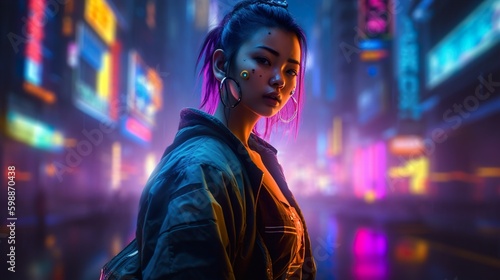 Generative Ai, young woman with a dangerous and intimidating appearance