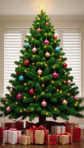 Generative image of Christmas tree adorned with presents under it Holiday Festive