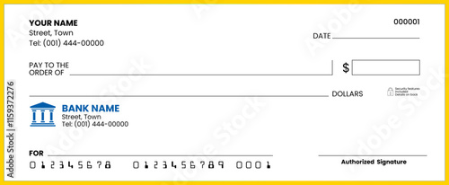 Generic Blank Bank Check Template: American Cheque Vector Design