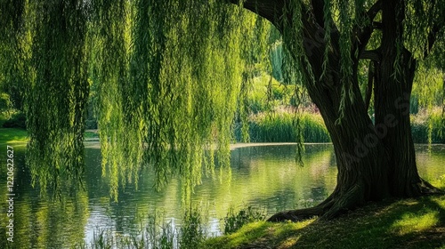 serenity, nature, calmness, willow, duck pond, breeze, leaf, peaceful, water, landscape, harmony, outdoors, calm, sunlight, shadow, beauty, environment, relaxation, greenery, summer, idylli, stillness, scenic, ripple, foliage, solitude, wildlife, organic, soft, gentle, atmosphere, meditation, escape, zen, retreat, rejuvenation, freshness, quietude, dreaming, pastoral, lush, vibrant, contrast, balance, earth, sanctuary