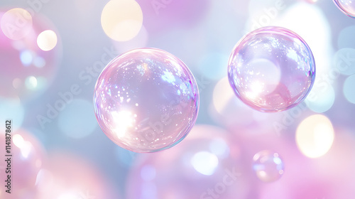 Gentle floating bubbles in pastel pink and periwinkle hues create dreamy atmosphere
