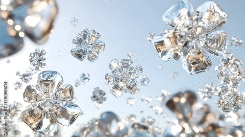 Gentle Photorealistic Snowflake Design on Pale Blue Background