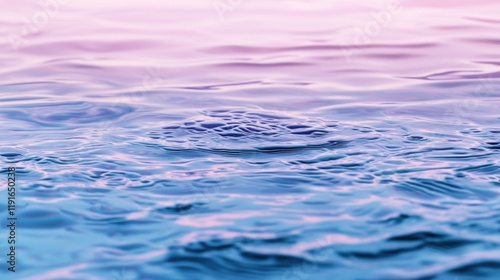 Gentle ripples disturbing the tranquil water surface reflect a harmonious blend of soft pink and blue hues, creating a serene, dreamlike atmosphere that invites calm and mindfulness