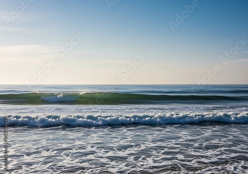 Gentle sea wave under soft sunlight, creating a peaceful and serene atmosphere