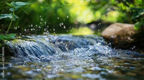 Gentle Splashes in Serene Green Scene Near a Quiet Stream