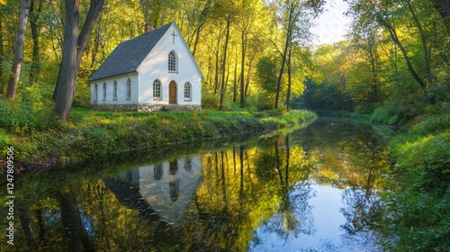 gentle, stream, tree, water, landscape, nature, calmness, sunlight, forest, serenity, peaceful, old, countryside, church, chapels, rural, greenery, serene, quiet, autumn, environment, picturesque, scenic, cabin, building, foliage, lake, calm, surrounding, beauty, tranquil, biodiversity, historic, travel, timberland, ecology, heritage, heritage site, rural area, harmony, natural, blue skies, scenery
