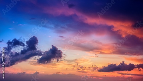 Gentle Vibrant Hues Sky End Day Dramatic Accumulated Clouds Appearing If Ignited Blue Upper Atmosphere Illuminated Magenta Orange Yellow Tones Dark Shaded Areas Weather Conditions Suitable Digital