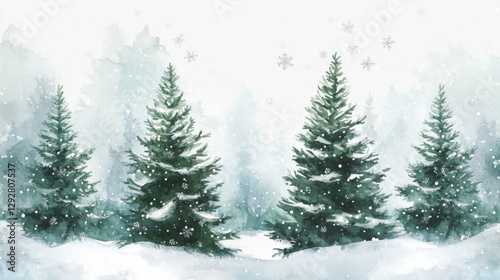 Gentle watercolor painting forest art scene natural environment scenic view soft pine trees