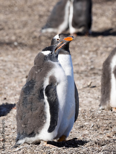 Gentoo penguin, Pygoscelis Papua, feed the chick, Falkland Islands
