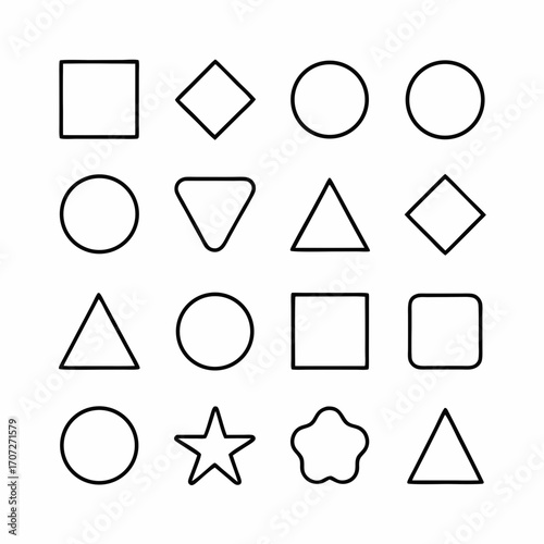 Geometric Abstract Outline Icons Set Thin Line Vector Shapes, Minimal Black Line Art