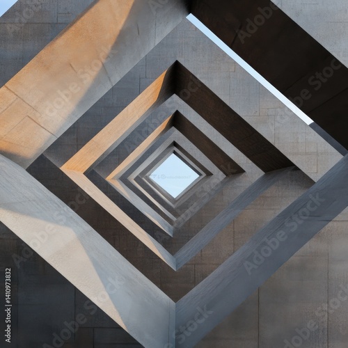 geometry, architecture, tunnel, concrete, structure, modern, design, pattern, abstract, shape, art, square, perspective, building, architectural, urban, daylight, light, shadow, minimal, construction, exterior, facades, sky, background, wall, grey, space, opening, hole