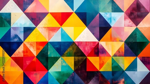 geometric, pattern, triangle, colours, art, design, abstract, modern, aesthetic, composition, visual, creativity, style, balance, contrast, unique, inspiration, decor, colourful, harmonious, artistry, interpretation, impact, reflect