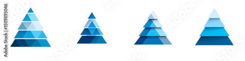 Geometric blue pyramids in a gradient design, showcasing various shades and tones of blue in a modern, minimalist style for digital applications and infographics