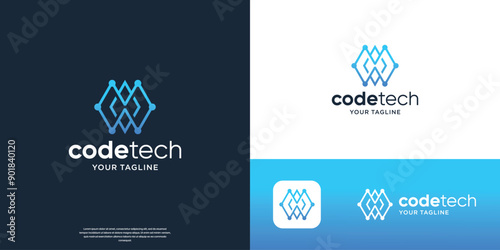 geometric code tech logo design, abstract line technology concept.