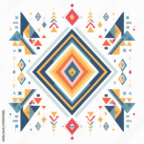 geometric, pattern, diamond, colourful, triangle, symbol, white, background, abstract, design, art, modern, ethnic, tribal, decorative, ornamental, illustration, graphic, texture, shape, colours, bright, vibrant, motif, symmetry, culture, traditional, folk, style, element, wallpaper, fabric, textile, print