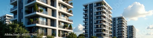 Geometric facade, European residential high-rise , luxury, home