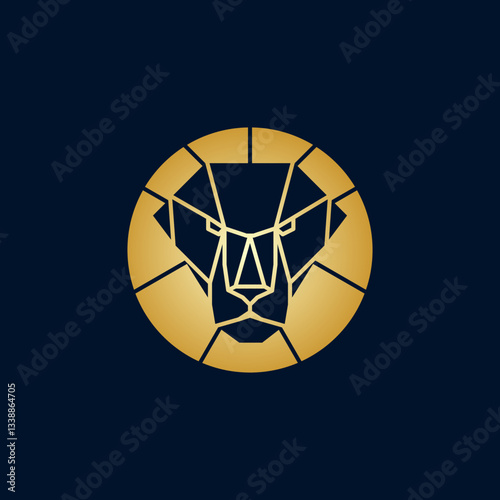 lion, geometric, gold, animal, logotype, design, graphic, icon, symbol, wildlife, abstract, illustration, circle, line, art, wild, nature, king, power, strength, prestige, luxury, elegant, majestic, fierce, bold, modern, minimal, clean, dark, background, gold, head, brand, identity