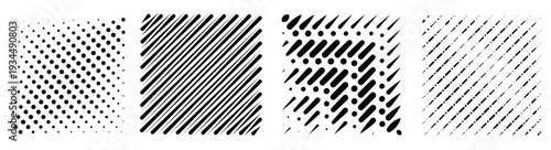 Geometric Halftone Pattern Set with Dots and Diagonal Lines