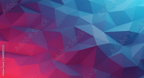 Geometric Low Poly Abstract Polygon Mesh with Vibrant Blue and Red Gradient