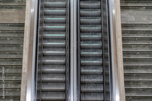 geometric pattern of escalators and cement staircase.