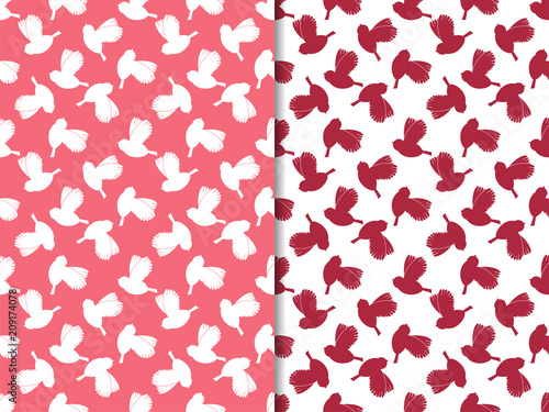 seamless, pattern, bird, flying, sparrow, pink, coral, wrapping, wallpaper, decoration, print, ornament, geometry, vector, graphic, fabric, coloured, abstract, geometric, illustration, decorative, texture, design, paper, art, style, background, textile