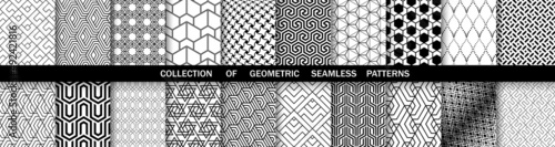 Geometric set of seamless black and white patterns. Simple vector graphics