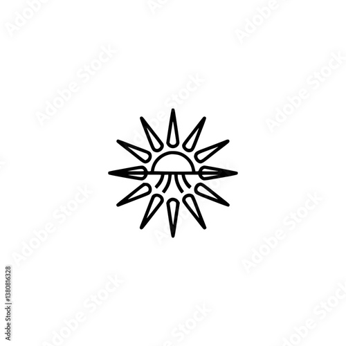 Geometric Sun Icon: Modern Minimalist Design on White Background